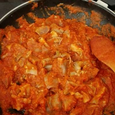 Callos de cerdo artesanales de benaojan Estomago morro Cocinado muy lentamente en un caldo con pimentón y especias de ahí su color intenso. Dentro de las principales comidas típicas de Campeche se encuentran los Pucheros los Panuchos el Poc Chuc y los Camarones al Coco. - Almidón de maiz o harina.