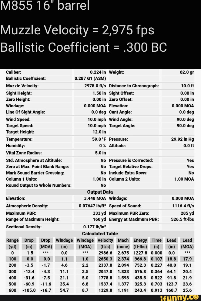 M855 Barrel Muzzle Velocity 2 975 Fps Ballistic Coefficient 300 Bc 0 224 In Weight 62 0 Gr Tic